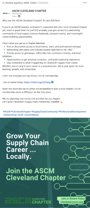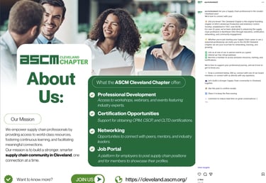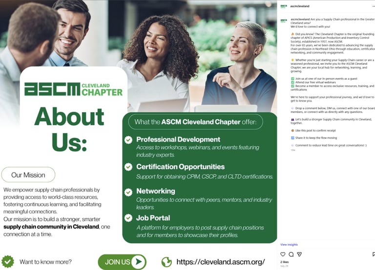 Improved chapter visibility across the Cleveland supply chain community and created a unified, modern online presence that attracts professionals, students, and local companies alike.