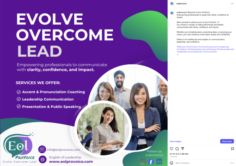 Amber wanted a brand that projected confidence and empowerment, helping professionals overcome “accent anxiety” and build leadership presence through communication.